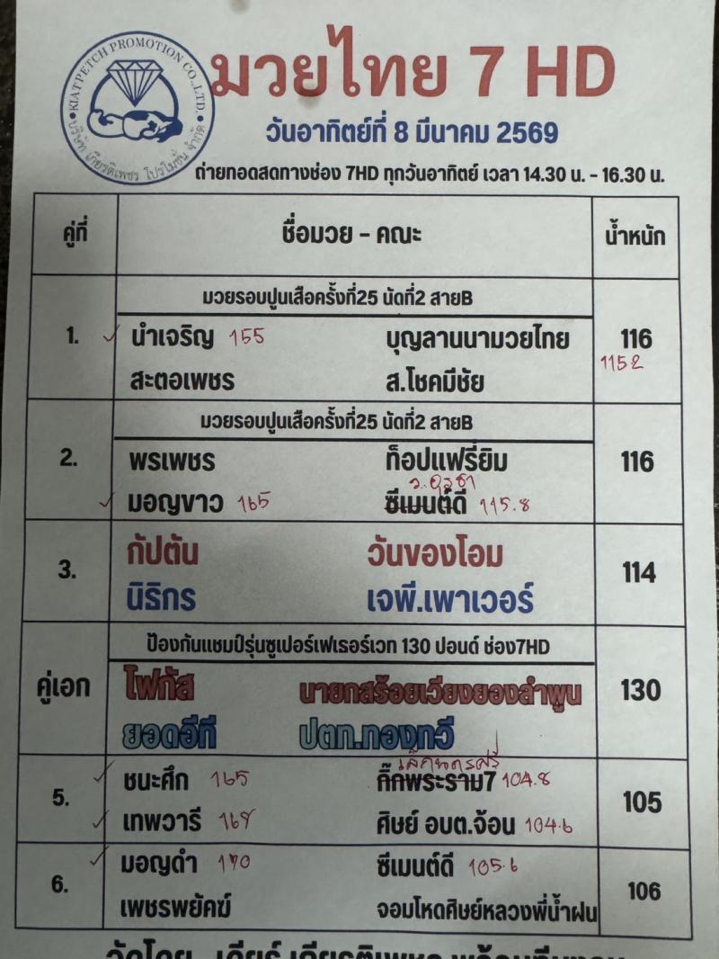 | # ศึกมวยไทยเกียรติเพชร 07/03/2569 |