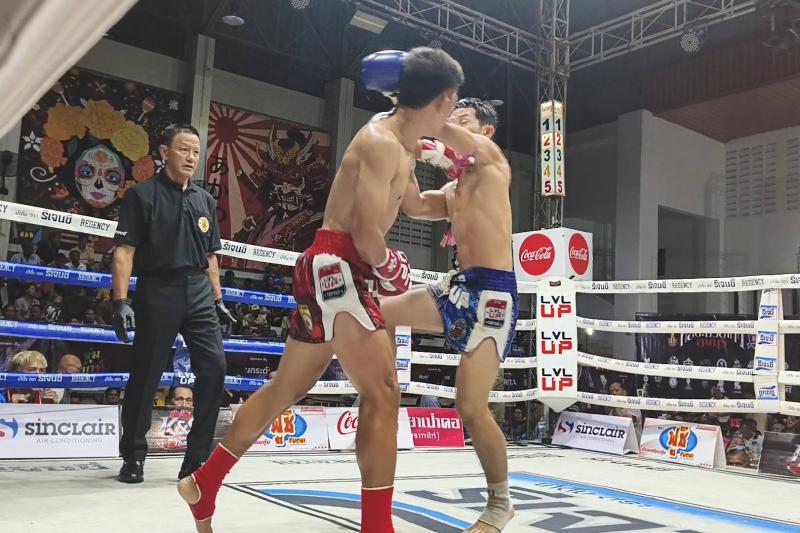 การต่อสู้ | มวยจังหวะฝีมือครบเครื่องแข้งซ้ายหนักแรงเหลี่ยมเข่าดีหมัดศอกแรงรวดเร็วกว่า ''เสือยิ้มยาก'' | มวยขวาฝีมือครบเครื่องสาดแข้งขวางหน้าเหลี่ยมหักเทดีปล้ำตีแข็งแกร่ง ''คู่แฝดแสนไกร'' |